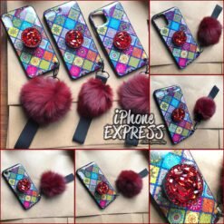 Retro Color Boxes iPhone case with Stones grip and Furball Belt